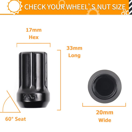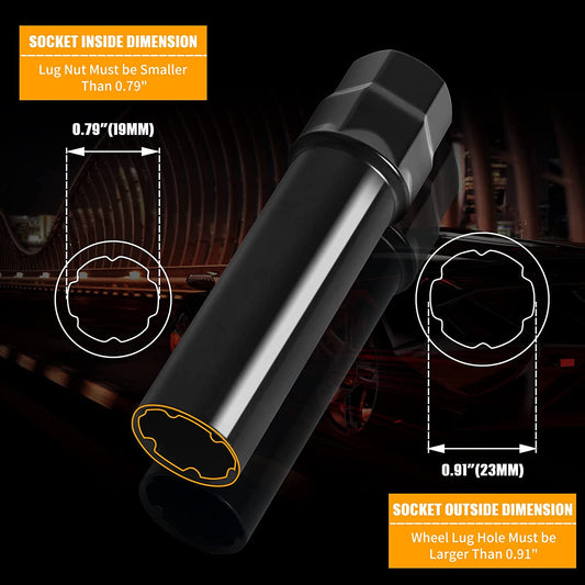 MIKKUPPA 6 Point Spline Lug Nuts Tuner Socket Key Tool - with 3/4 inch (19mm) and 13/16 inch (21mm) Hex for 1/2-20 12x1.5 12x1.25 Black Lug Nut Socket