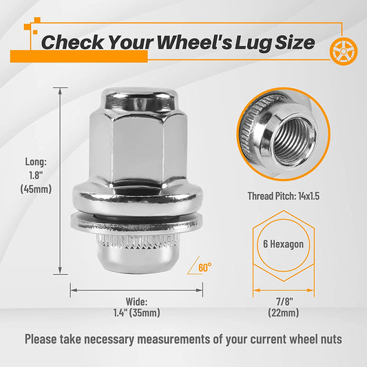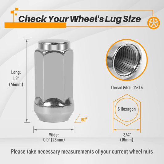 MIKKUPPA M14x1.5 Lug Nuts with Cone Seat 19mm (3/4") Hex Wheel Lug Nuts Compatible with Chevrolet Silverado Suburban 1500 Ford Expedition F-150 Ram 1500 & More (32, Chrome)