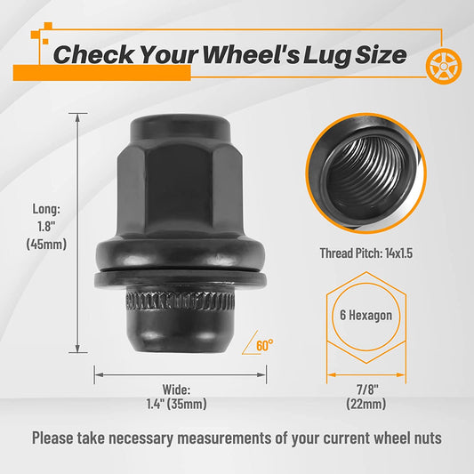 MIKKUPPA 24pcs M14X1.5 Black Lug Nuts - 1.80" (45mm) Height 7/8" Hex Replacement for Toyota Sequoia Landcruiser Tundra Lexus LX