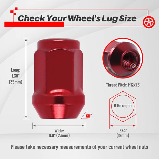 MIKKUPPA M12x1.5 Lug Nuts - Replacement for 2006-2019 Ford Fusion, 2000-2019 Ford Focus, 2001-2019 Ford Escape Aftermarket Wheel - 20pcs Red Closed End Lug Nuts
