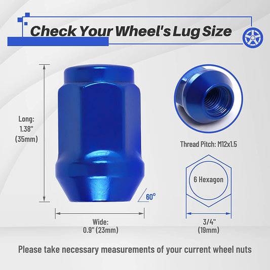 MIKKUPPA M12x1.5 Lug Nuts - Replacement for 2006-2019 Ford Fusion, 2000-2019 Ford Focus, 2001-2019 Ford Escape Aftermarket Wheel - 20pcs Blue Closed End Lug Nuts