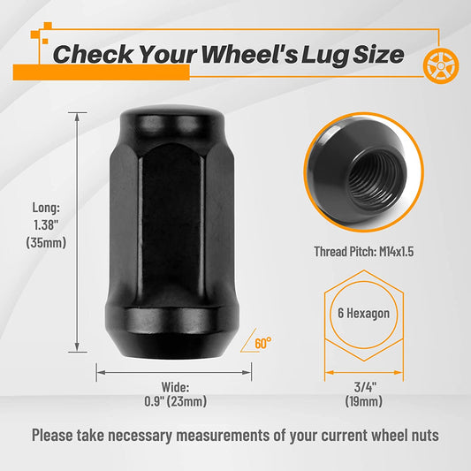 MIKKUPPA 24PCS M14x1.5 Lug Nuts - 3/4" Hex, 1.38" Tall, 0.9" Wide - Replacement for 1999-2020 Chevrolet Silverado 1500, 2015-2016 Ford F-150 Aftermarket Wheel - Black Acorn Closed End Solid Lug Nuts