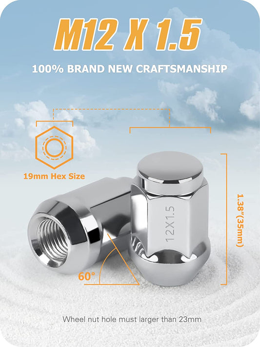 MIKKUPPA M12x1.5 Lug Nuts - Replacement for 2006-2019 Ford Fusion, 2000-2019 Ford Focus, 2001-2019 Ford Escape Aftermarket Wheel - 20pcs Chrome Closed End Lug Nuts
