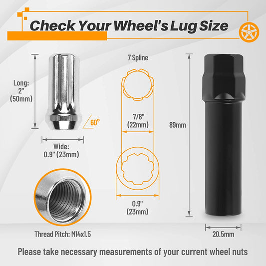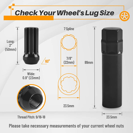 MIKKUPPA 32PCS 9/16-18 Lug Nuts - 7/8" Hex, 2" Tall, 0.91" Wide - Replacement for 2002-2010 Dodge Ram 1500, 1994-2010 Dodge Ram 2500, 2015-2017 Ford F-150 Aftermarket Wheel - Black Splined Lug Nuts
