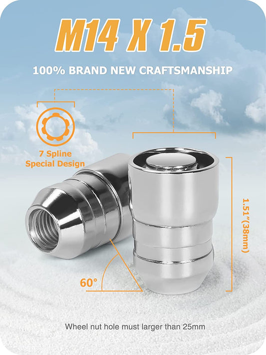 MIKKUPPA 14x1.5 Wheel Locking Lug Nuts Chrome Cone Seat Wheel Tire Lock Nuts Set with Key Replacement for Jeep/Toyota/Honda/Ford - Set of 4