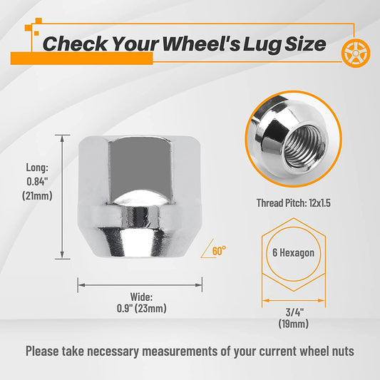 MIKKUPPA 24pcs 14x1.5 Lug Nuts Chrome - 1.38" Tall 3/4" Hex Short Wheel Lug Nut Replacement for K1500 K2500 Grand Cherokee Suburban 1500