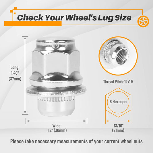 MIKKUPPA M12x1.5 Lug Nuts - 20pcs One-Piece Chrome OEM Factory Style Mag Seat Lug Nuts - Replacement for Toyota Lexus Scion Pontiac Factory Wheels