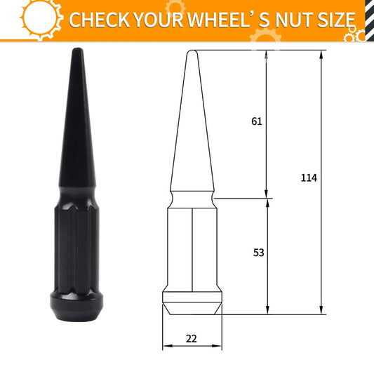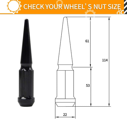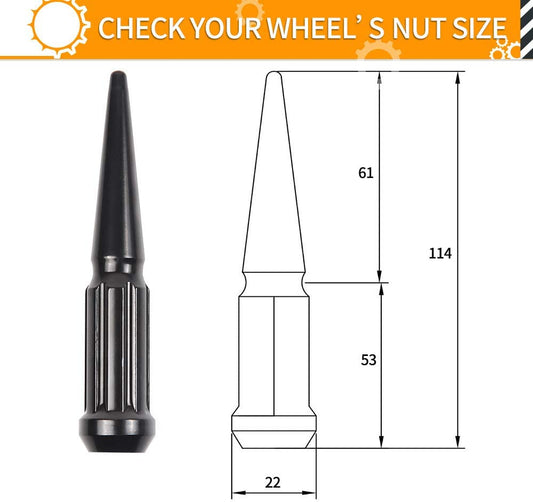 MIKKUPPA M14x1.5 Wheel Spike Lug Nuts, 24pcs Black Spike Lug Nuts 14mmx1.5 Solid 4.4" Tall Acorn Lug Nut with 1 Socket Key Replacement for Chevy Silverado 1500 2500 3500, F-150 F-250 F-350