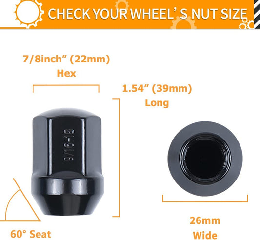 MIKKUPPA M12x1.5 Wheel Spike Lug Nuts, 24pcs M12x1.5 Lug Nut, Cone/Conical Bulge Seat, Black Closed End Nuts with 1 Socket Key Replacement for Chevy Blazer Corvette Camaro Aftermarket Wheel