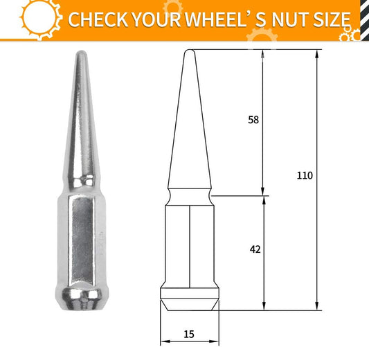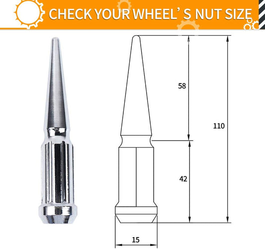 MIKKUPPA 1/2-20 Wheel Spike Lug Nuts, 20pcs Chrome Spike Lug Nuts 1/2x20 Solid 4.4" Tall Acorn Lug Nut with 1 Socket Key Replacement for Jeep Wrangler Cherokee Liberty